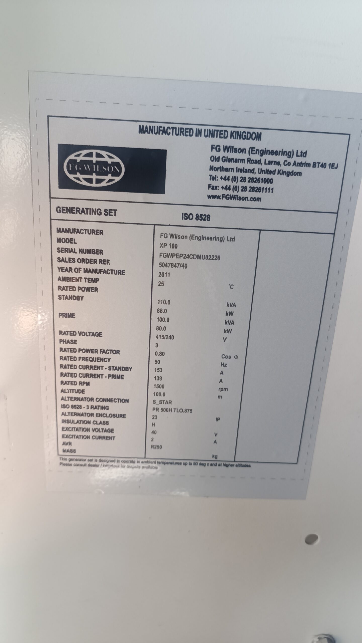 Tags: 100kVA, 100kVA Diesel Generator, 100kVA FG Wilson, 100kVA Perkins, Back up generator, Diesel Generator